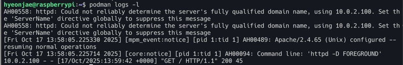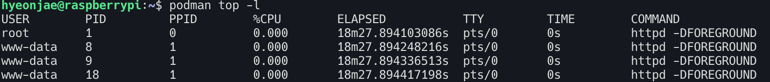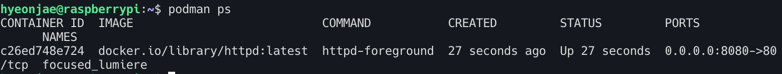 - podman inspect 명령어로 기동중 컨테이너의 메타데이터와 상세정보를 확인 할 수 있다.