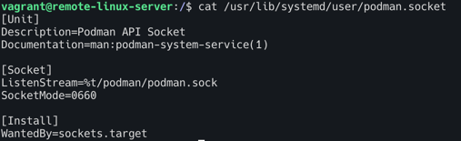 Podman API를 소켓을 통해 자동으로 시작 (설정 파일 : /usr/lib/systemd/user/podman.socket