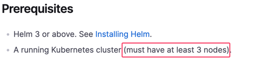 vagrant를 사용하여 쿠버네티스 클러스터를 구축한다. helm차트를 이용하여 배포할 것인데 공식문서를 보니 최소 3개 노드를 요구한다.