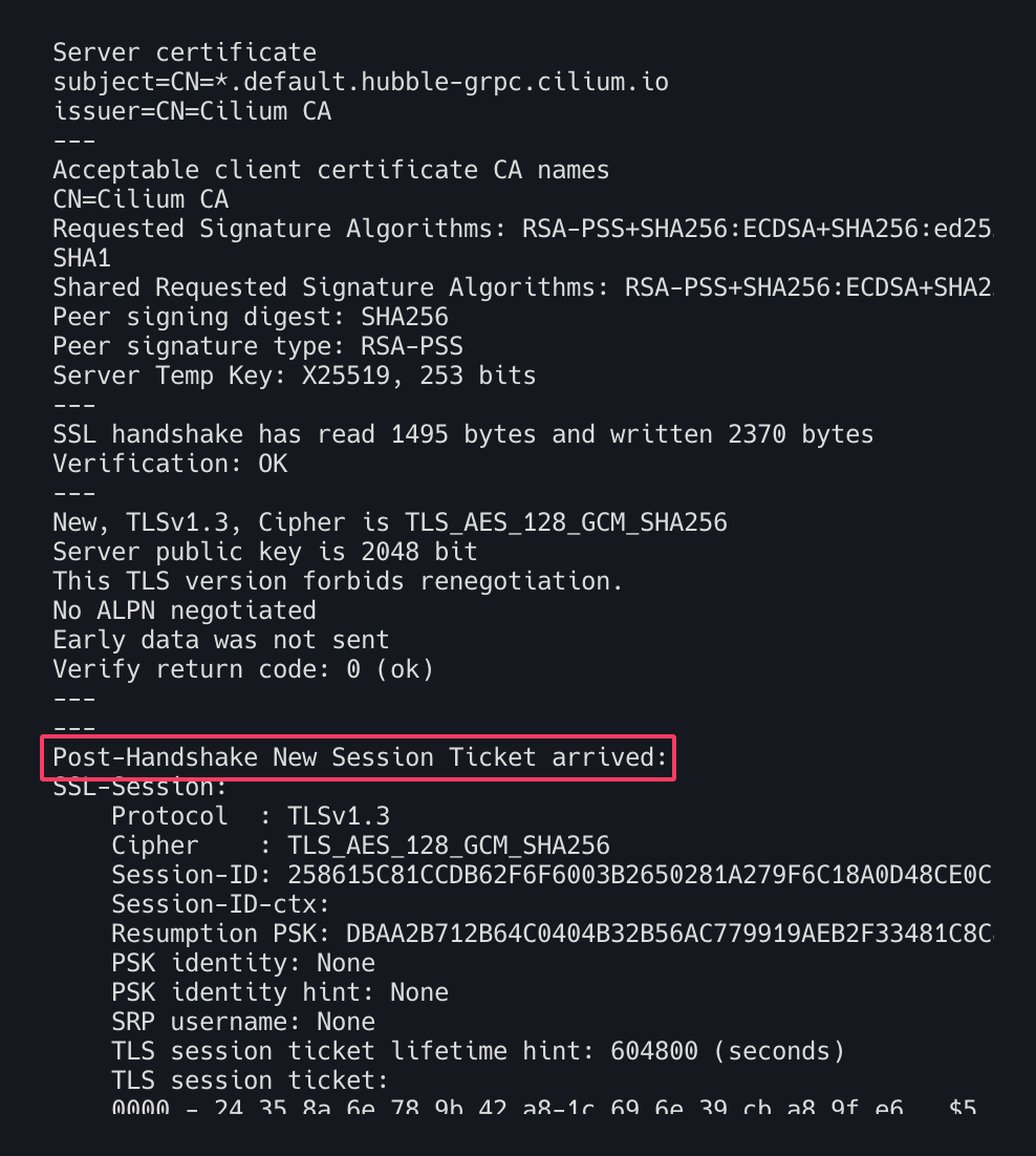 중간에 아래와 같은 Post-Handshake New Session Ticket arrived