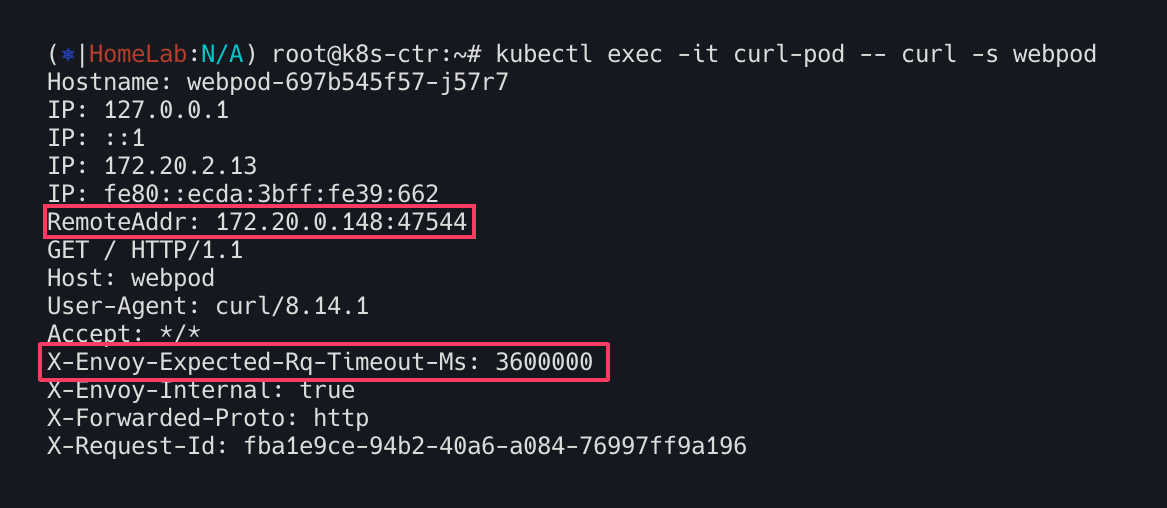 kubectl exec -it curl-pod -- sh -c 'curl -s webpod/?user_id=1234'