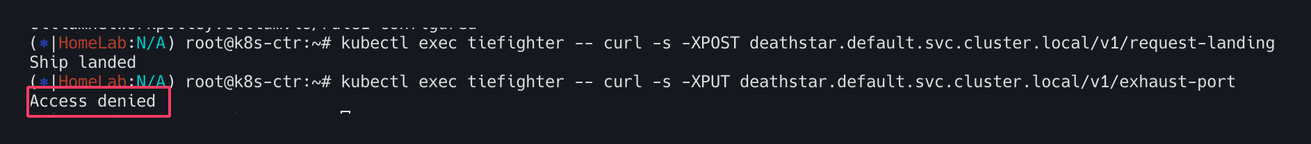 kubectl exec tiefighter -- curl -s -XPUT deathstar.default.svc.cluster.local/v1/exhaust-port