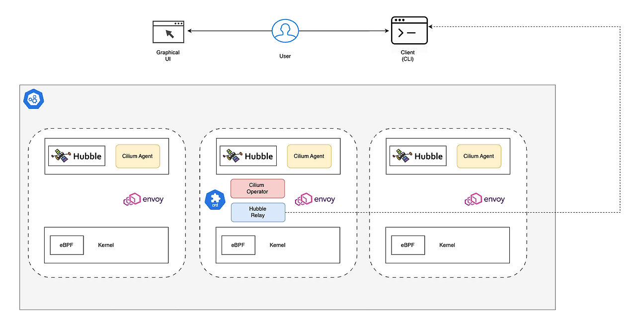 허블은 Cilium과 eBPF를 기반으로 한 분산형 네트워크 및 보안 관측 플랫폼이다. 서비스 간 통신과 동작, 네트워크 인프라에 대한 깊은 가시성을 낮은 오버헤드로 제공한다.