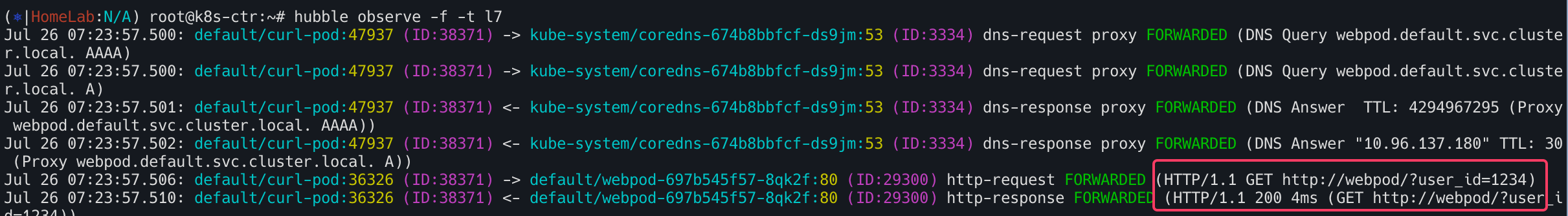 를 통해 모든 HTTP요청을 허용 및 L7에대한 가시성을 활성화한다.