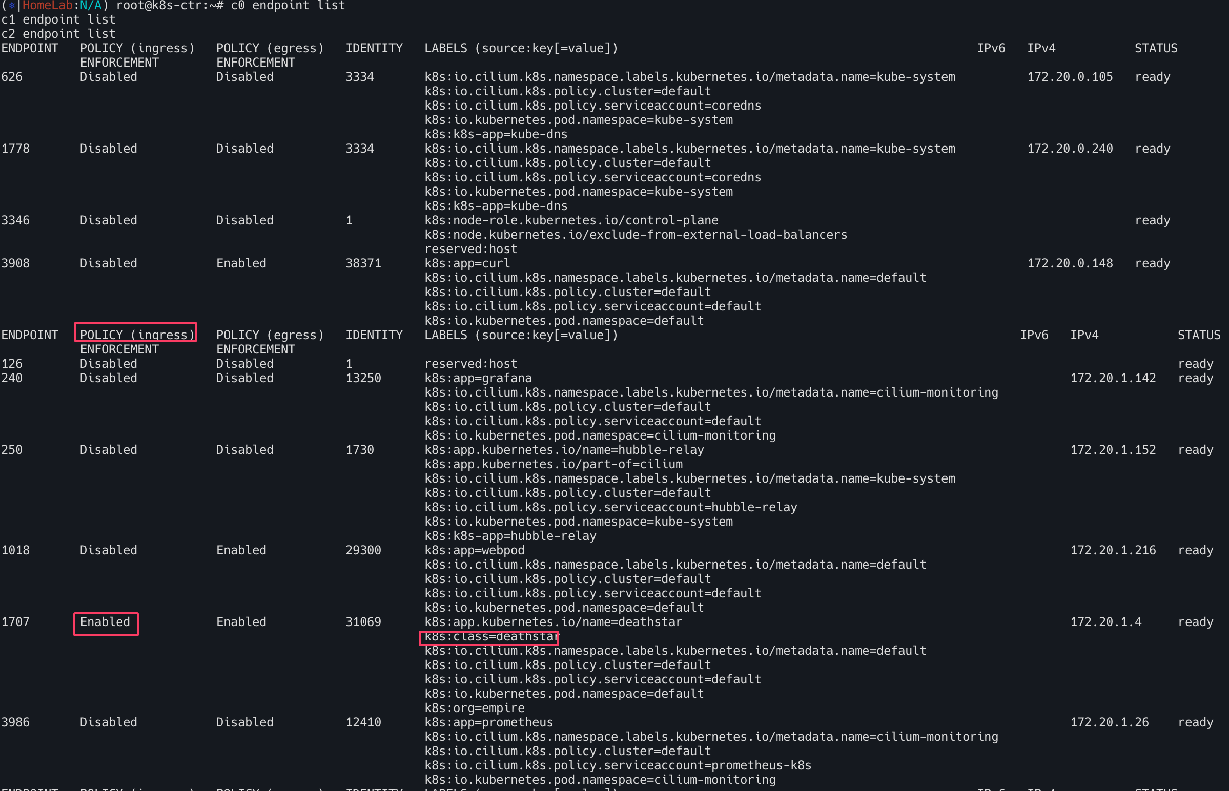 kubectl exec -it $CILIUMPOD0 -n kube-system -c cilium-agent -- cilium endpoint list