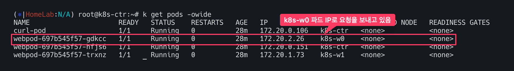라우팅 정보 확인 : k8s node 간 다른 네트워크 대역에 있더라도, 파드의 네트워크 대역 정보가 라우팅에 올라왔다!