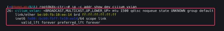 for i in w1 w0 ; do echo ">> node : k8s-$i <<"; sshpass -p 'vagrant' ssh vagrant@k8s-$i ip -c addr show dev cilium_vxlan ; echo; done