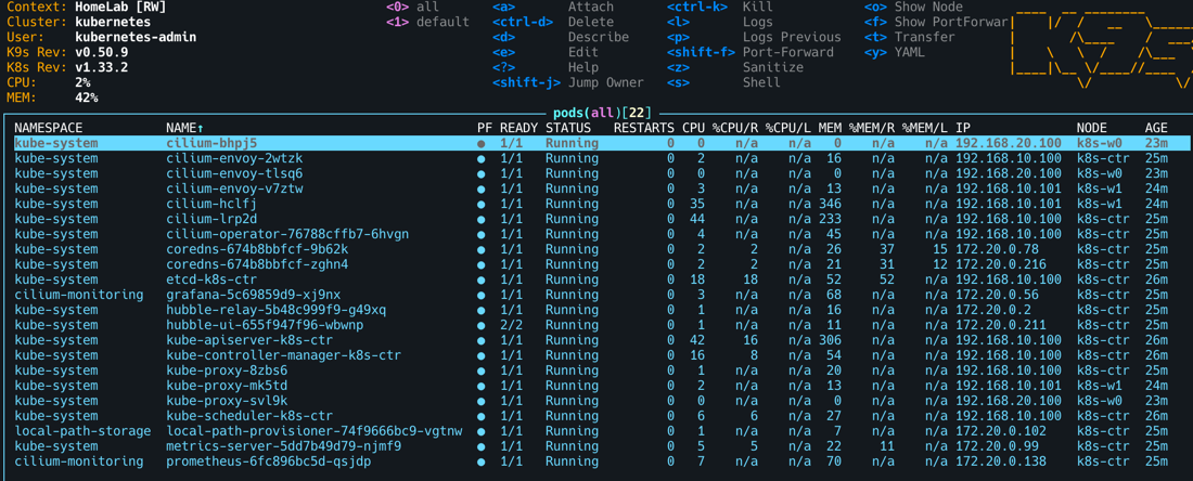 k9s # node/pod 정보 확인 - metrics-server 설치되어 있어서, cpu/mem 확인 가능
