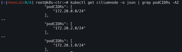 kubectl get ciliumnode -o json | grep podCIDRs -A2
