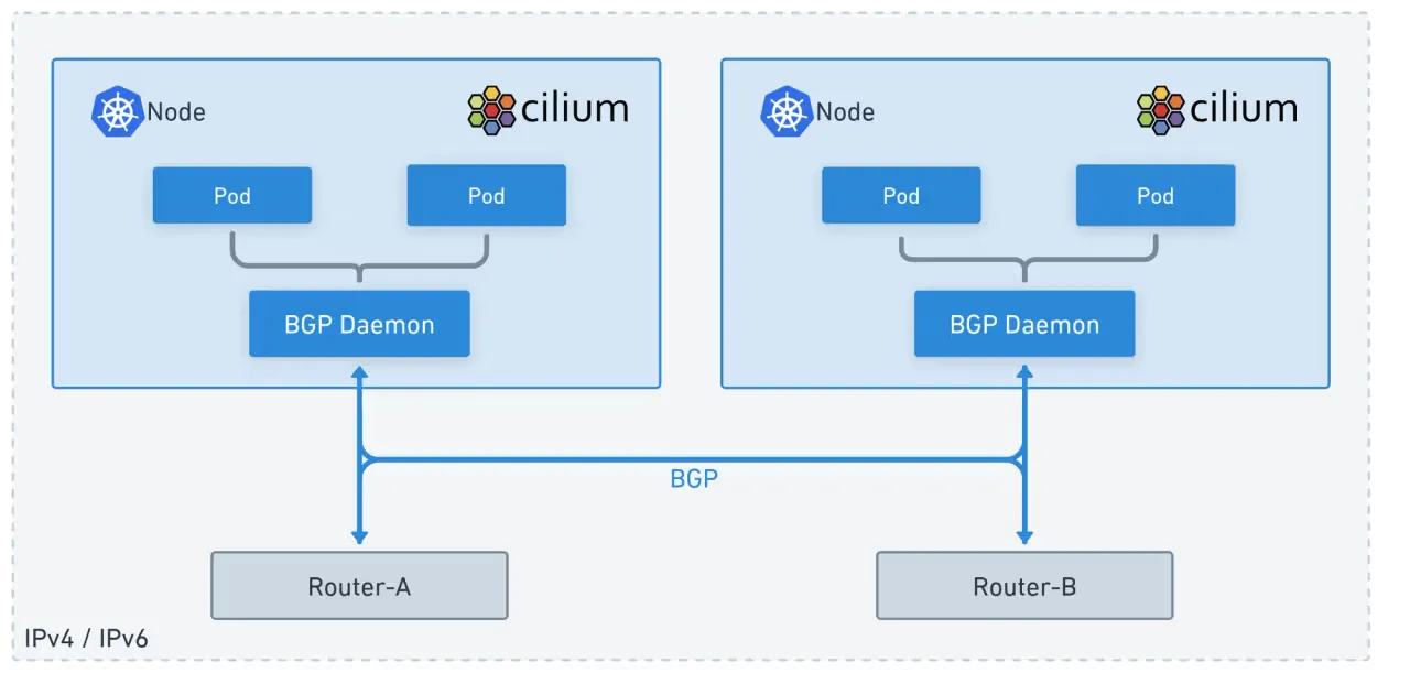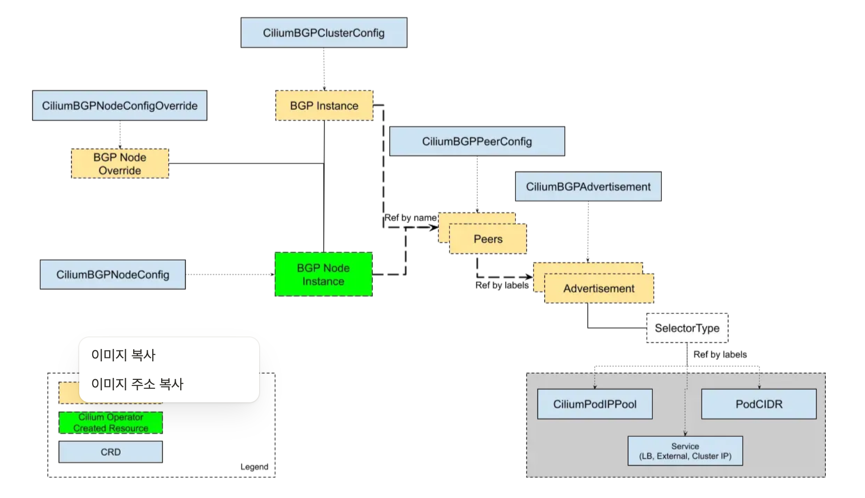 Cilium BGP 컨트롤 플레인은 BGP 피어, 정책, 광고를 유연하게 구성할 수 있는 맞춤형 리소스로 관리된다.