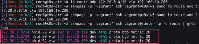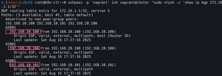 : 192.168.10.100, 192.168.10.101, 192.168.20.100 등의 Cilium 노드들이 CILIUM 피어 그룹에 속하도록 설정한다.systemctl daemon-reexec && systemctl restart frr