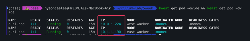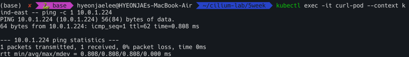 kubectl exec -it curl-pod --context kind-east -- ping -c 1 10.0.1.224