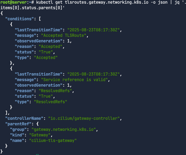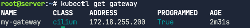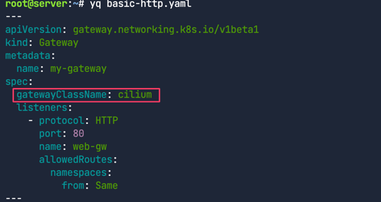 으로 되어 있는 것을 확인할 수 있다. 이는 이전에 설정한 Cilium GatewayClass