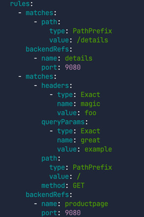 보다시피, 이제 일관된 L7 트래픽 규칙을 배포할 수 있다. 이전의 Ingress API에서는 이러한 라우팅 목표를 달성하기 위해 종종 어노테이션(annotation)이 필요했고, 이는 Ingress 컨트롤러마다 불일치를 야기했다. 새로운 Gateway API의 장점 중 하나는 기능이 두 가지 역할로 분리되었다는 점인데 하나는 Gateway 자체를 정의하는 역할이고, 다른 하나는 백엔드 서비스로 향하는 Route를 정의하는 역할이다. 이 두 기능을 분리함으로써, 운영자는 Gateway를 변경하거나 교체하더라도 동일한 라우팅 설정을 유지할 수 있다. 다시 말해, 만약 다른 Gateway API 컨트롤러를 사용하기로 결정하더라도, 기존의 매니페스트를 그대로 재사용할 수 있다.