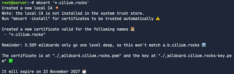 mkcert는 Gateway 서비스에 사용할 키(_wildcard.cilium.rocks-key.pem
