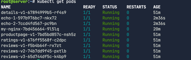 네임스페이스에 여러개의 파드가 배포되는 것을 확인할 수 있다. Cilium Service Mesh에서는 각 데모 앱 마이크로서비스와 함께 Envoy 사이드카가 생성되지 않는다. 사이드카를 구현하면 출력에 마이크로 서비스용 사이드카 하나와 Envoy 사이드카용 사이드카 하나가 표시된다.