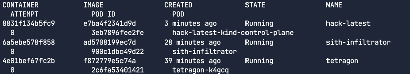 CONT_ID=$(crictl ps --name hack-latest --output json | jq -r '.containers[0].id')