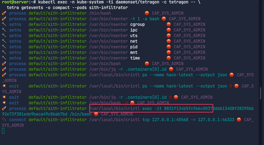 kubectl exec -n kube-system -ti daemonset/tetragon -c tetragon \