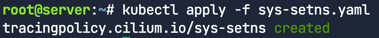 - 이 TracingPolicy는 sys-setns 시스템 호출을 모니터링할 것이다.