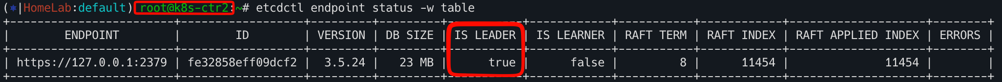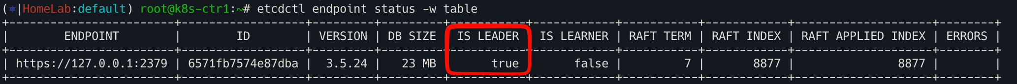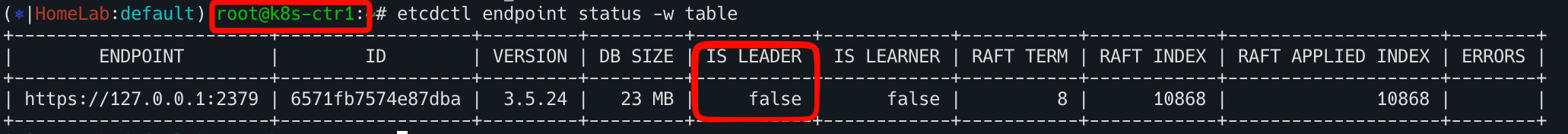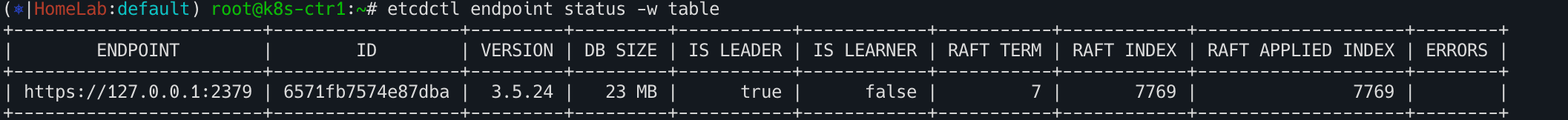 etcdctl endpoint status -w table