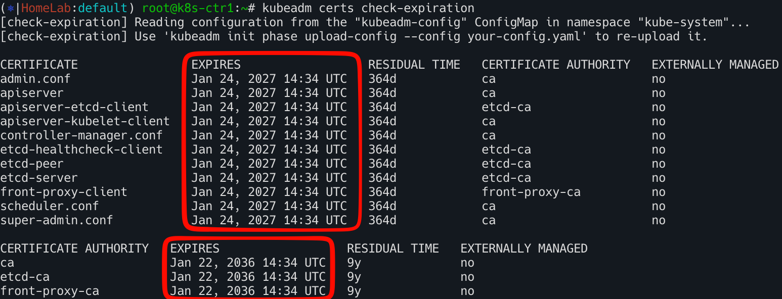 - 참고로 CA 인증서(10년)는 변경되지 않음. 즉 나머지 controlplane node 에 CA 인증서 한번 더 복사할 필요 없음.
