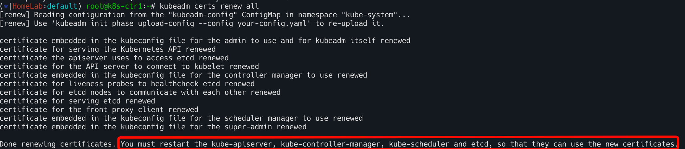k8s-ctr1에서 kubeadm certs renew 인증서 갱신