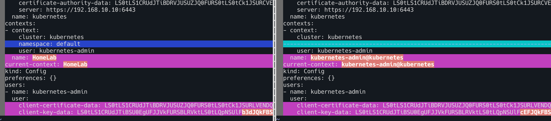 kubectl config rename-context "kubernetes-admin@kubernetes" "HomeLab"